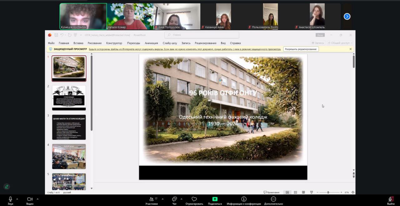 11.03.2026 року з нагоди 96- ї річниці з дня заснування Одеського технічного фахового коледжу ОНТУ у гр. 3 КГ-10 (кл.керівник Комар Н. М.) та гр.1 МБ-01/ФБ-06 (кл. керівн...