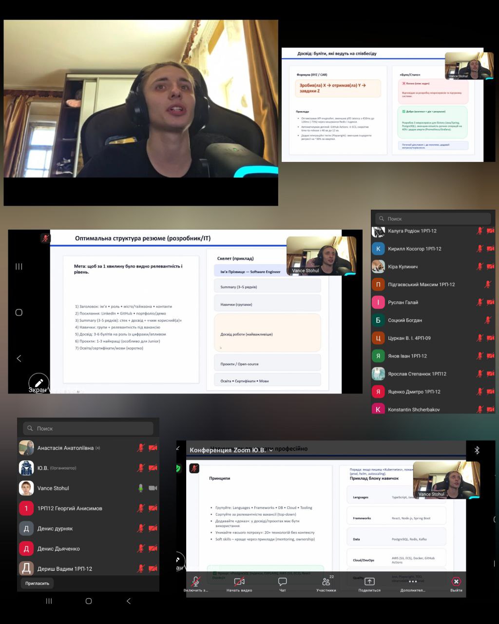 11.03. для здобучів освіти 1 курсу спеціальності F2 Інженерія програмного забезпечення відбулася виховна класна година, присвячена самопрезентації на ринку праці. З...