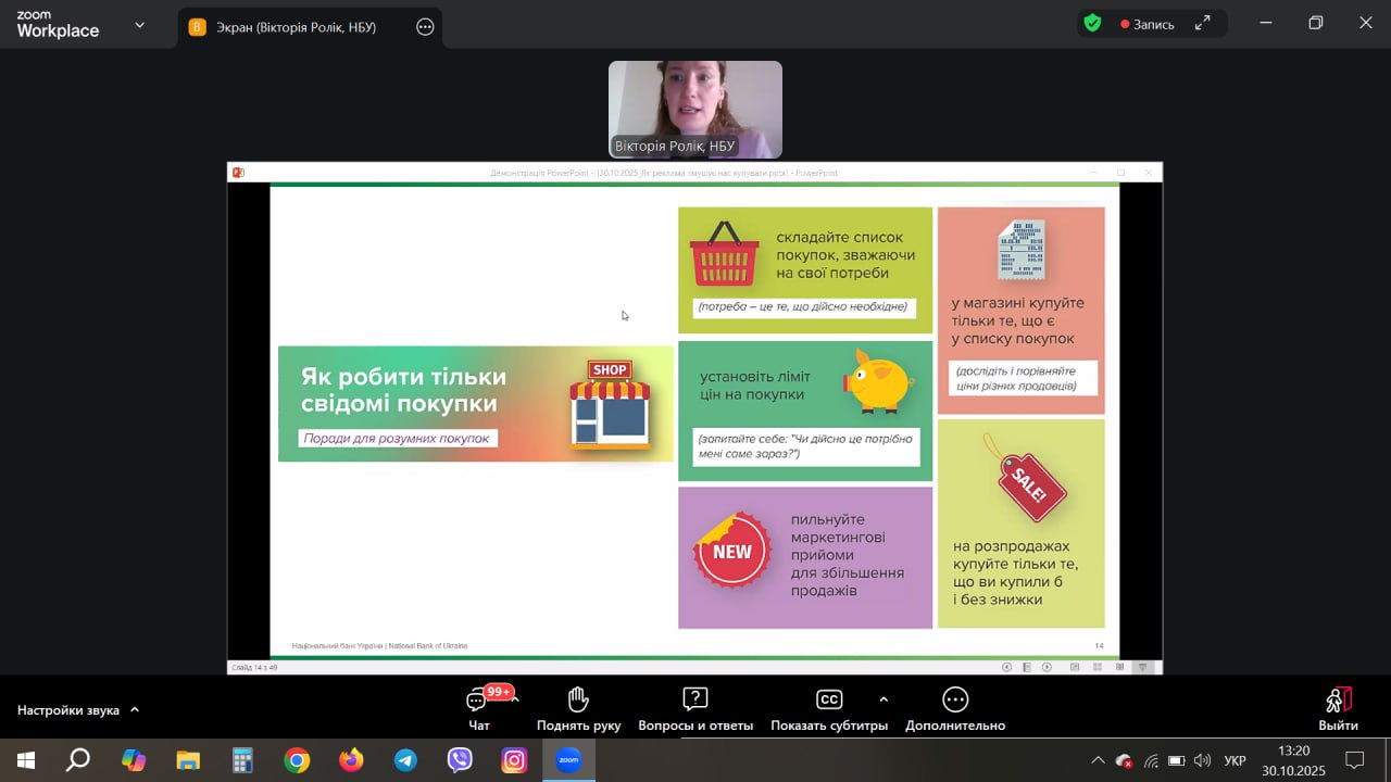 30 жовтня 2025 року в межах програми «Тиждень заощаджень 2025», члени студентського наукового гуртка «Бізнес-клуб» взяли участь у вебінарі на тему: «Як реклама змушує нас...