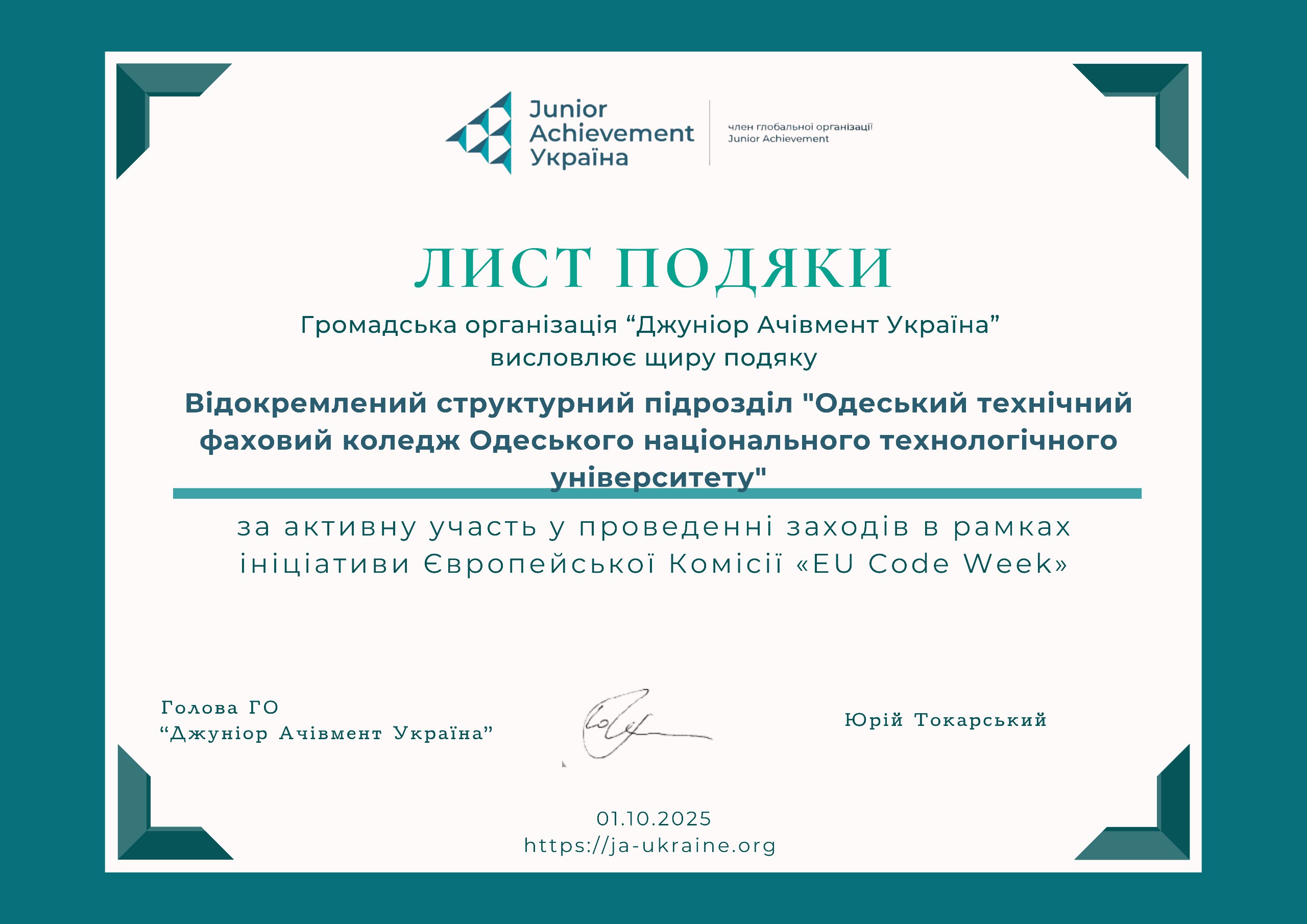 Коледж долучився до міжнародного челенджу "EU CODE WEEK 2025 "— європейської ініціативи, спрямованої на формування інтересу до ІТ та розвиток цифрових навичок здобувачів ...