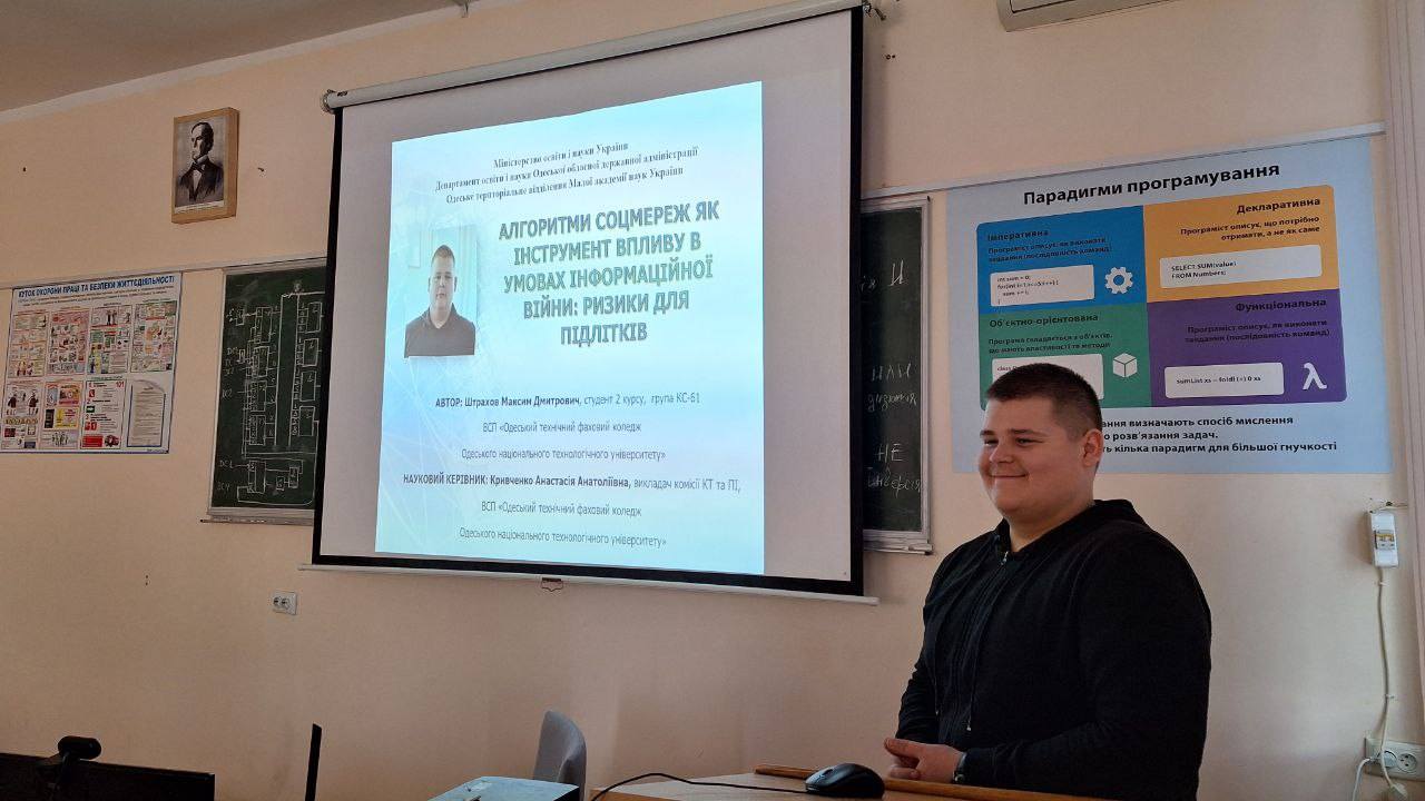 На базі циклової комісії комп’ютерної техніки та програмної інженерії ВСП «Одеський технічний фаховий коледж ОНТУ» відбувся І етап Всеукраїнського конкурсу-захисту науково-дослідницьких робіт учнів – членів Малої академії наук України у 2025–2026 н.р.