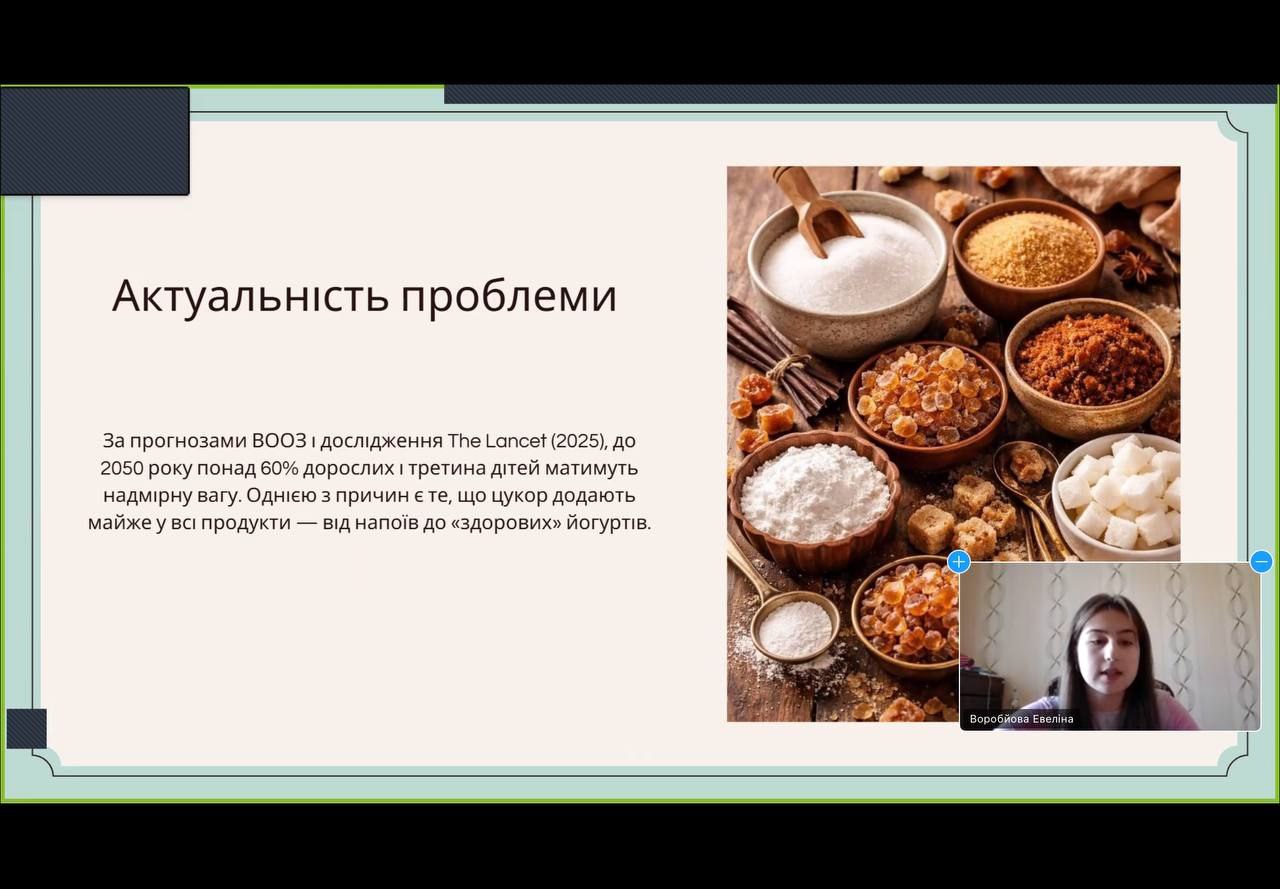 Евеліна Воробйова, Аліна Грінченко, група 1ІМ-08, (науковий керівник Швець Л.І.) - проєкт на тему: “Цукор і його замінники: експериментальні дослідження та суспільне сприйняття” - 1 місце.