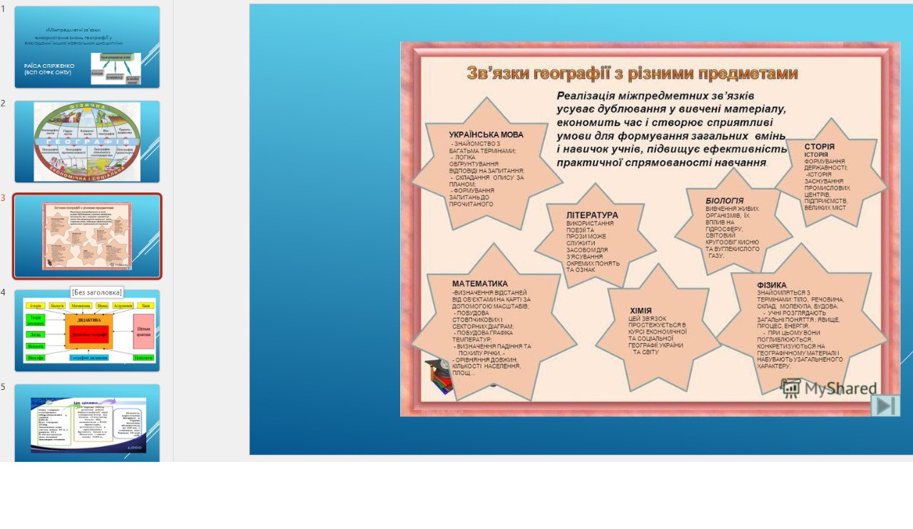 Темою виступу було обрано «Міжпредметні зв’язки: використання знань географії у викладанні інших навчальних дисциплін»