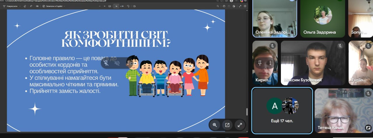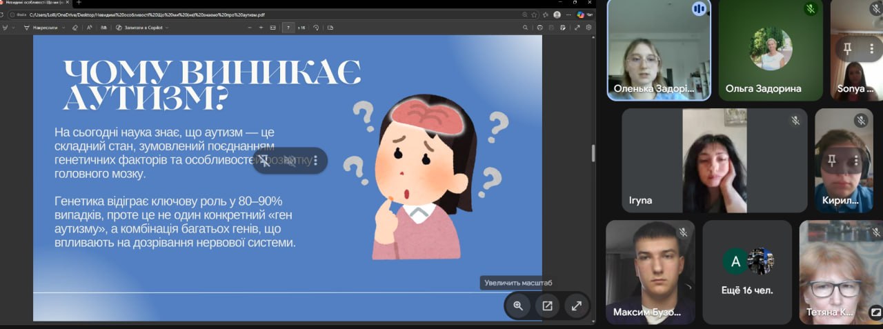Чи знаєте ви, що аутизм — це не хвороба, а інший «код» сприйняття дійсності? 2 квітня, у Всесвітній день поширення інформації про аутизм, за ініціативи викладачів комісії фізико-математичних дисциплін Качан Т.В. та Задоріна В.В. було проведено онлайн-зустріч зі студентами та викладачами коледжу «Невидимі особливості: що ми (не) знаємо про аутизм», щоб зробити цей світ зрозумілішим.