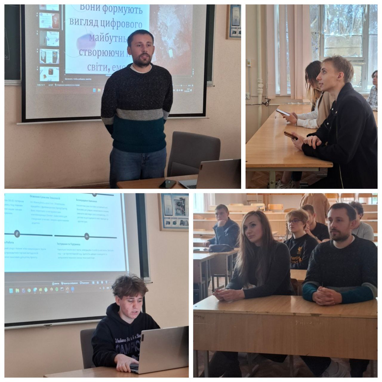 10 жовтня 2025 року для студентів групи 3РП-10 відбулася виховна година на тему "Перспективи та пріоритети майбутньої професії". Захід провів викладач комісії комп’ютерних технологій та програмної інженерії — Комар Валерій Віталійович.