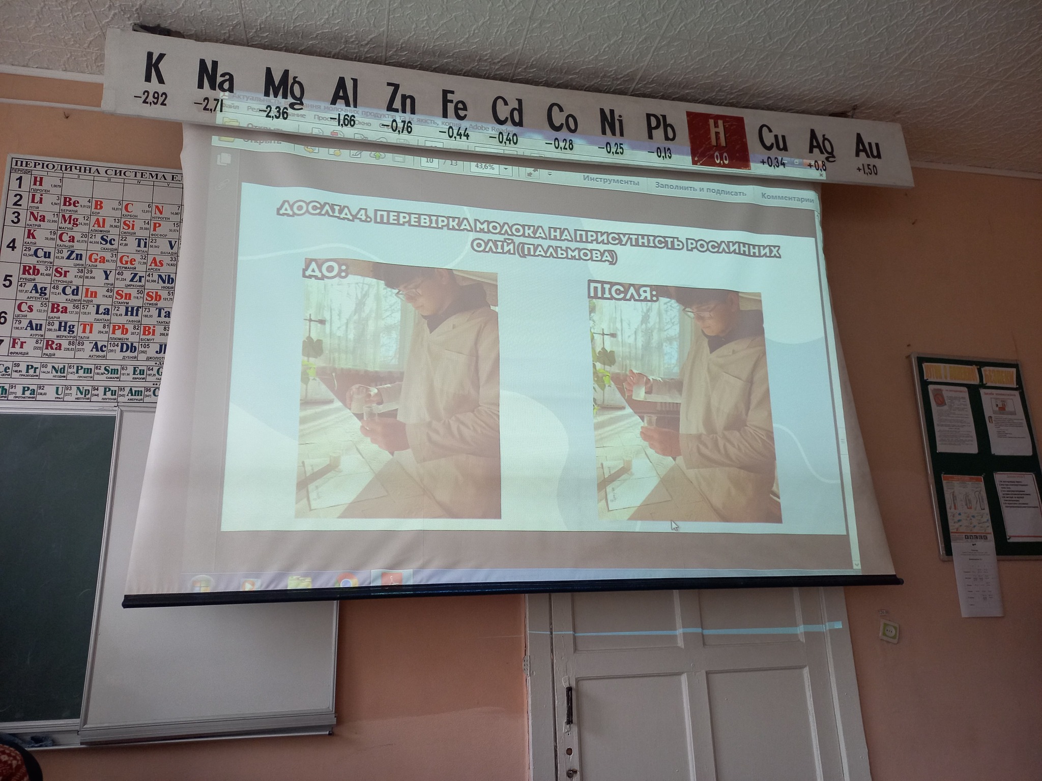 Максим гідно представив результати свого дослідження перед журі у складі: завідувачки технологічного відділення Касаджик В.В.; голови циклової комісії харчових технологій та хімії Ільчишиної Н.М.; викладачів хімії та біології Дьякової Т.В. та Дев’ятьярової Л.І.