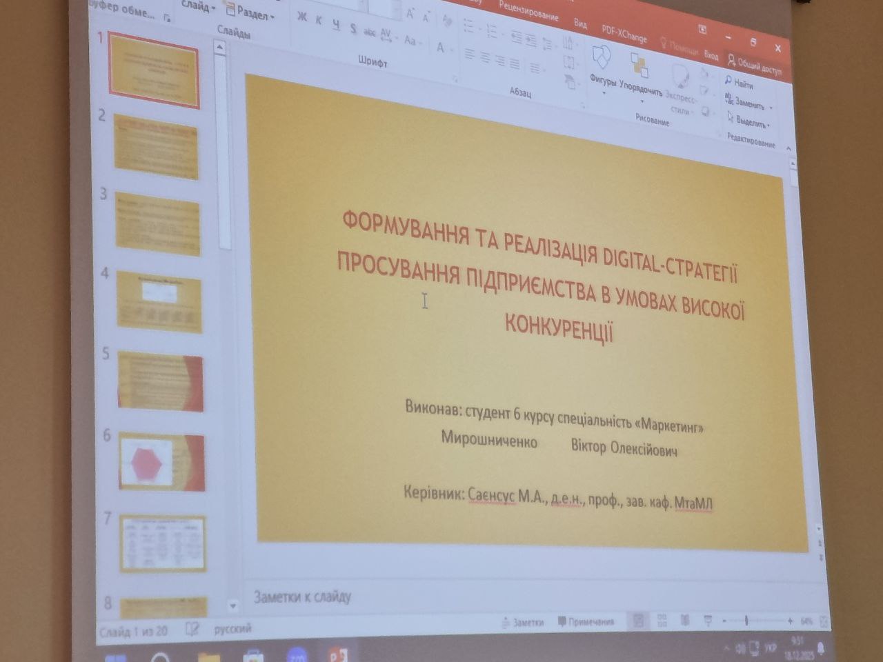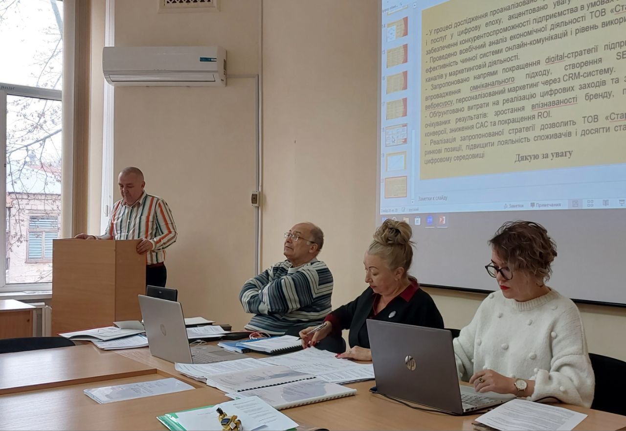18 грудня 2025 року на базі кафедри «Маркетингу та міжнародної логістики» Одеського національного економічного університету відбувся захист магістерських дипломних робіт студентів 6 курсу спеціальність «Маркетинг».