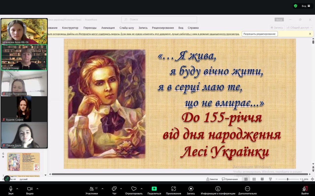 З метою вшанування 155-річчя від дня народження видатної української поетеси, письменниці, перекладачки та громадської діячки Лесі Українки було проведено літературний за...