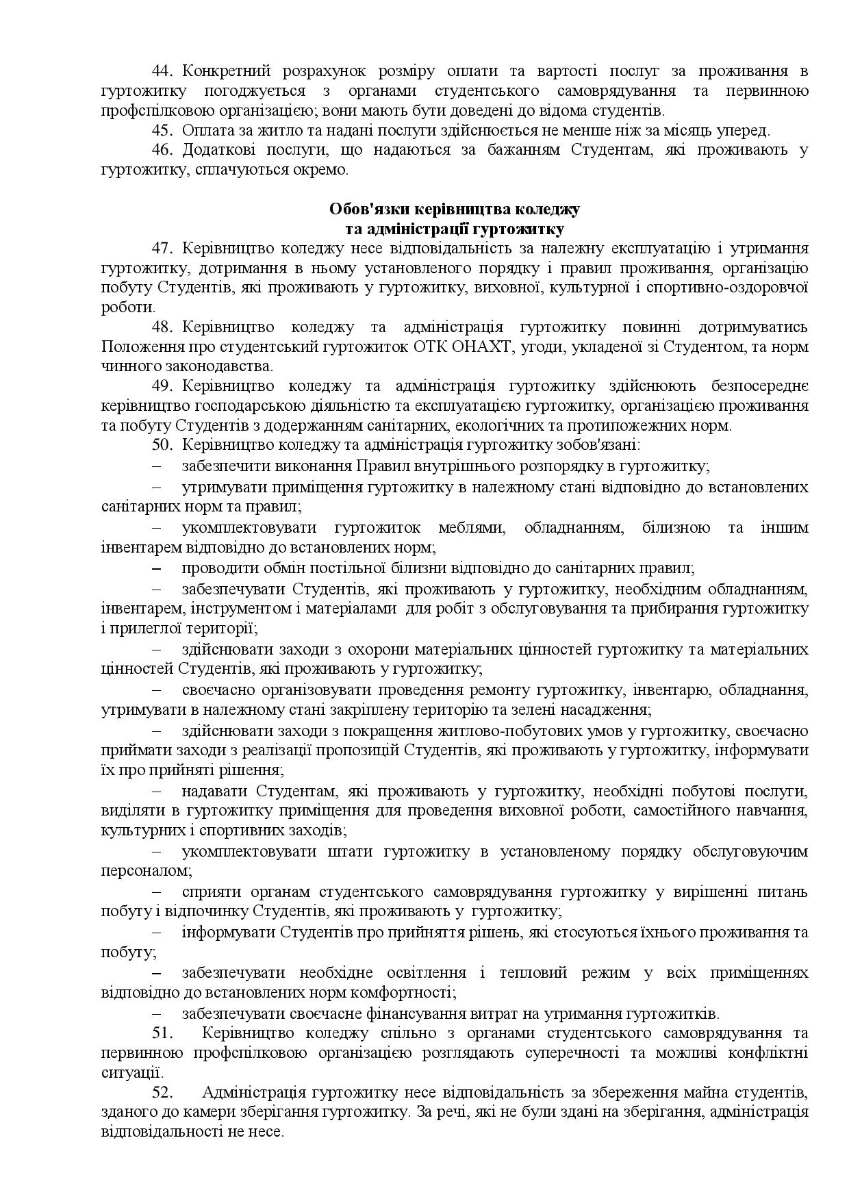 Положення про внутрішній розпорядок в студентському гуртожитку